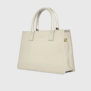 Its compact yet roomy silhouette, complete with top handle and shoulder strap, makes it an exceptionally versatile accessory, adding a touch of elegance to any outfit.