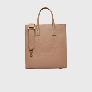 It features an elegant zip closure, double leather handles, and a removable fabric-and-leather shoulder strap. The embossed logo adds a refined and subtle touch, making it perfect for both everyday use and special occasions.
