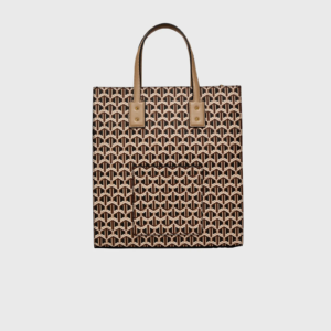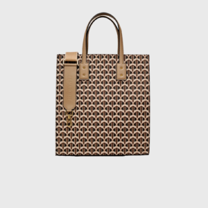 It features an elegant zip closure, double leather handles, and a removable fabric-and-leather shoulder strap. The embossed logo adds a refined and subtle touch, making it perfect for both everyday use and special occasions.